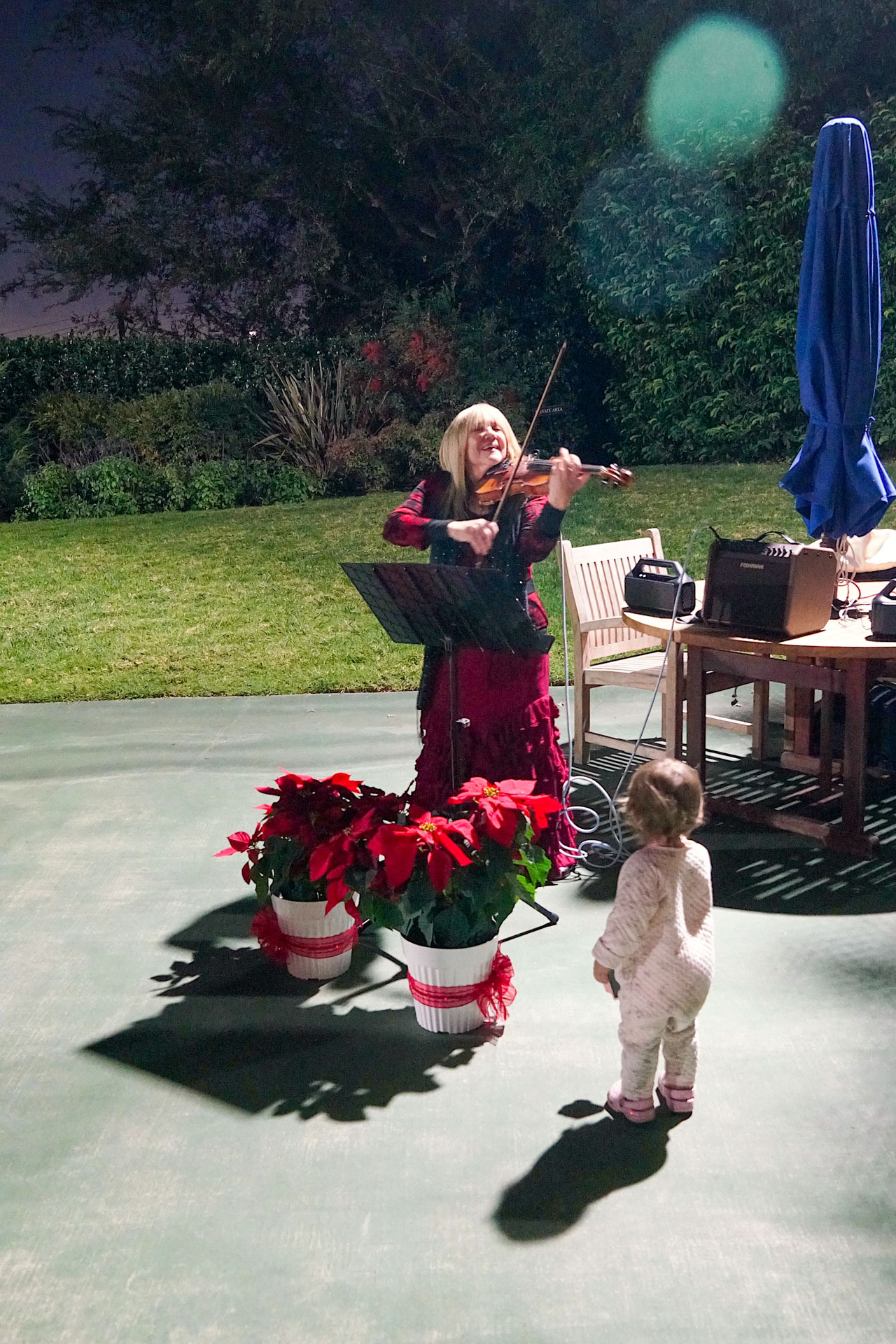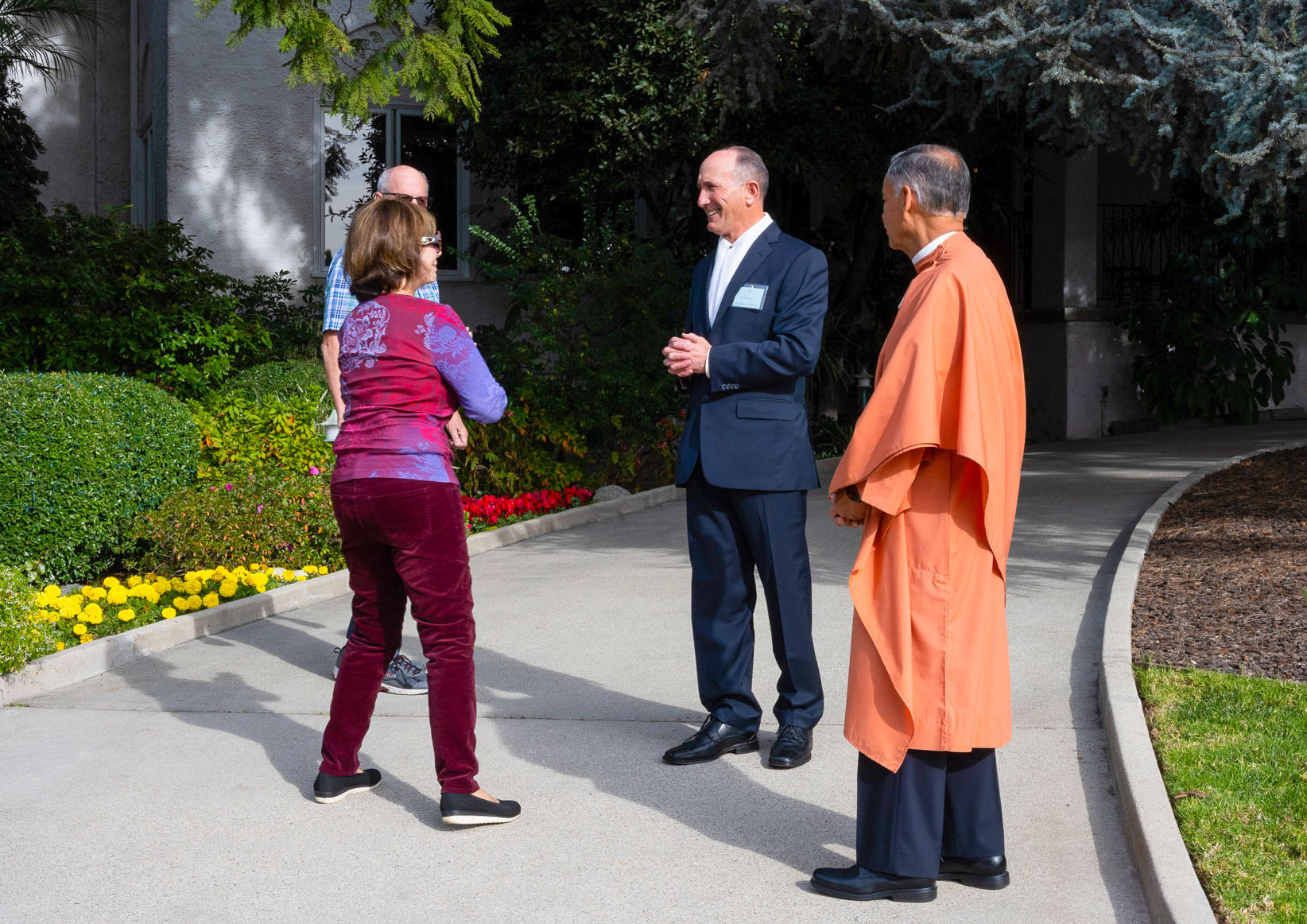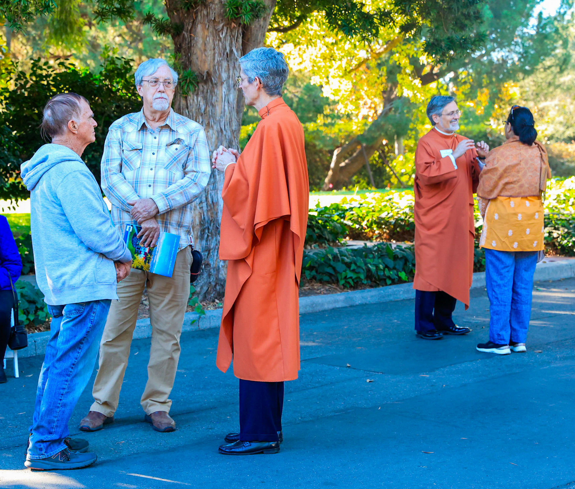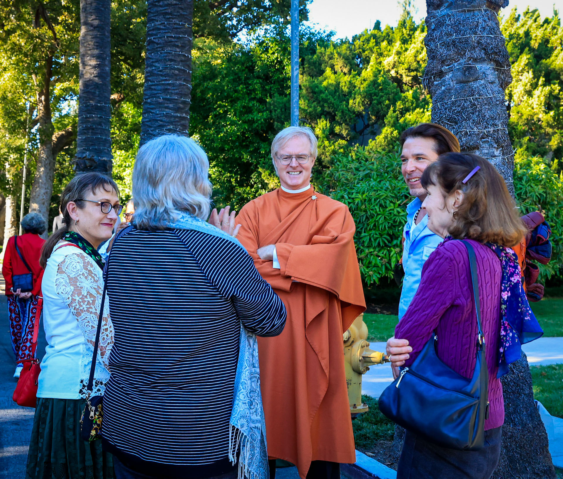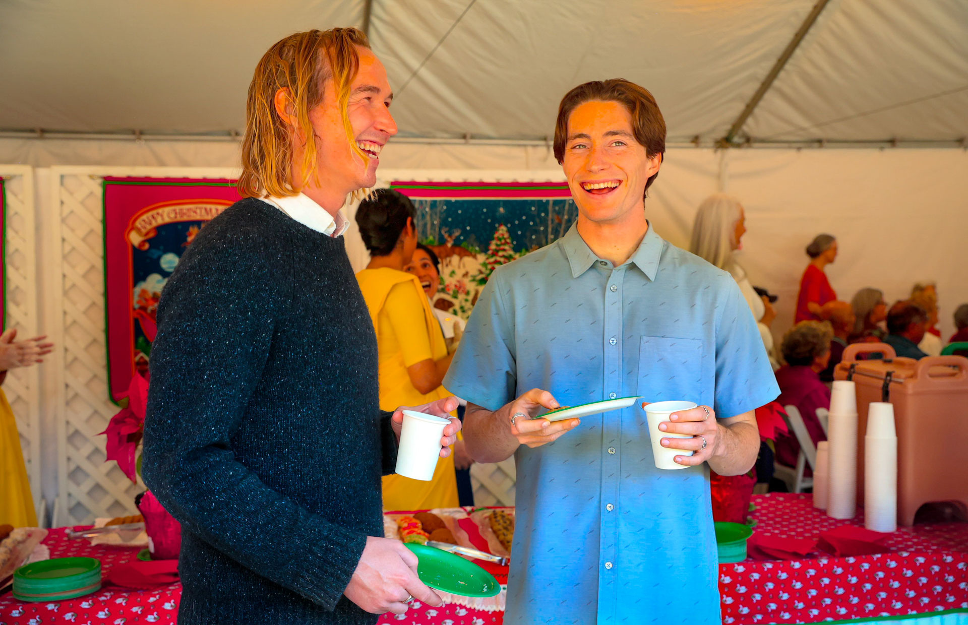 Held on Friday evening, December 6, the festive event drew more than 230 neighbors to the Mother Center, where they were greeted by SRF monks and nuns. Visitors were able to view the many unique decorations in the Reception Hall of the main building, and enjoy visits with Santa Claus and his elf under a decorated tent on the tennis court, where refreshments were offered and carolers uplifted the gathering with Christmas cheer. It was a special joy to share the universal spirit of Christmas with our neighbors.