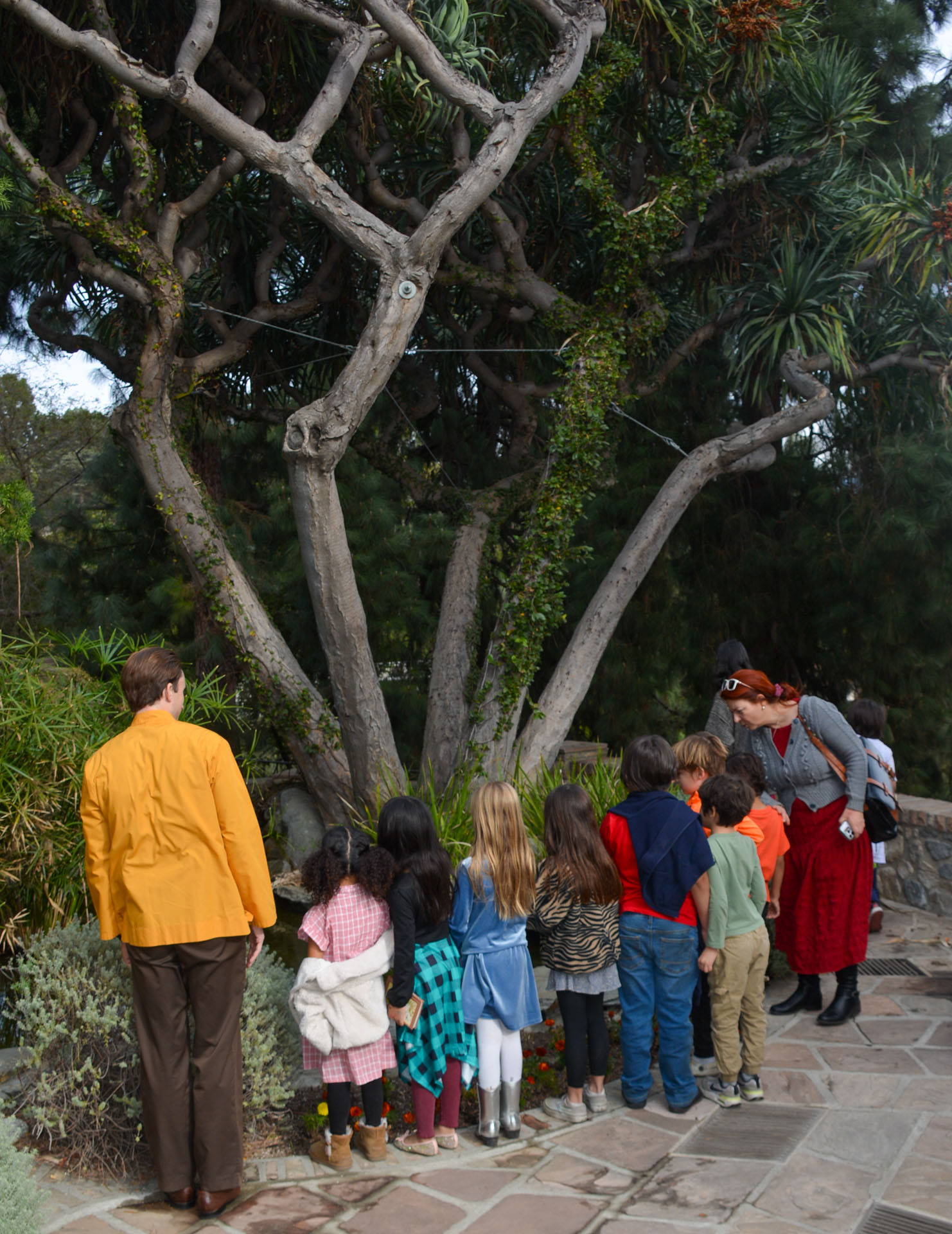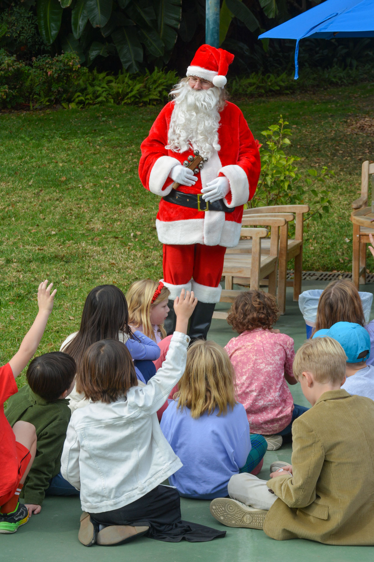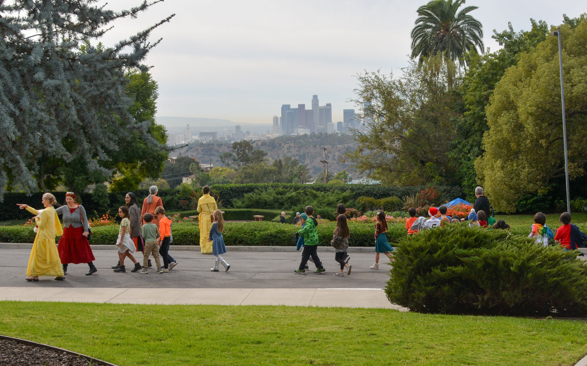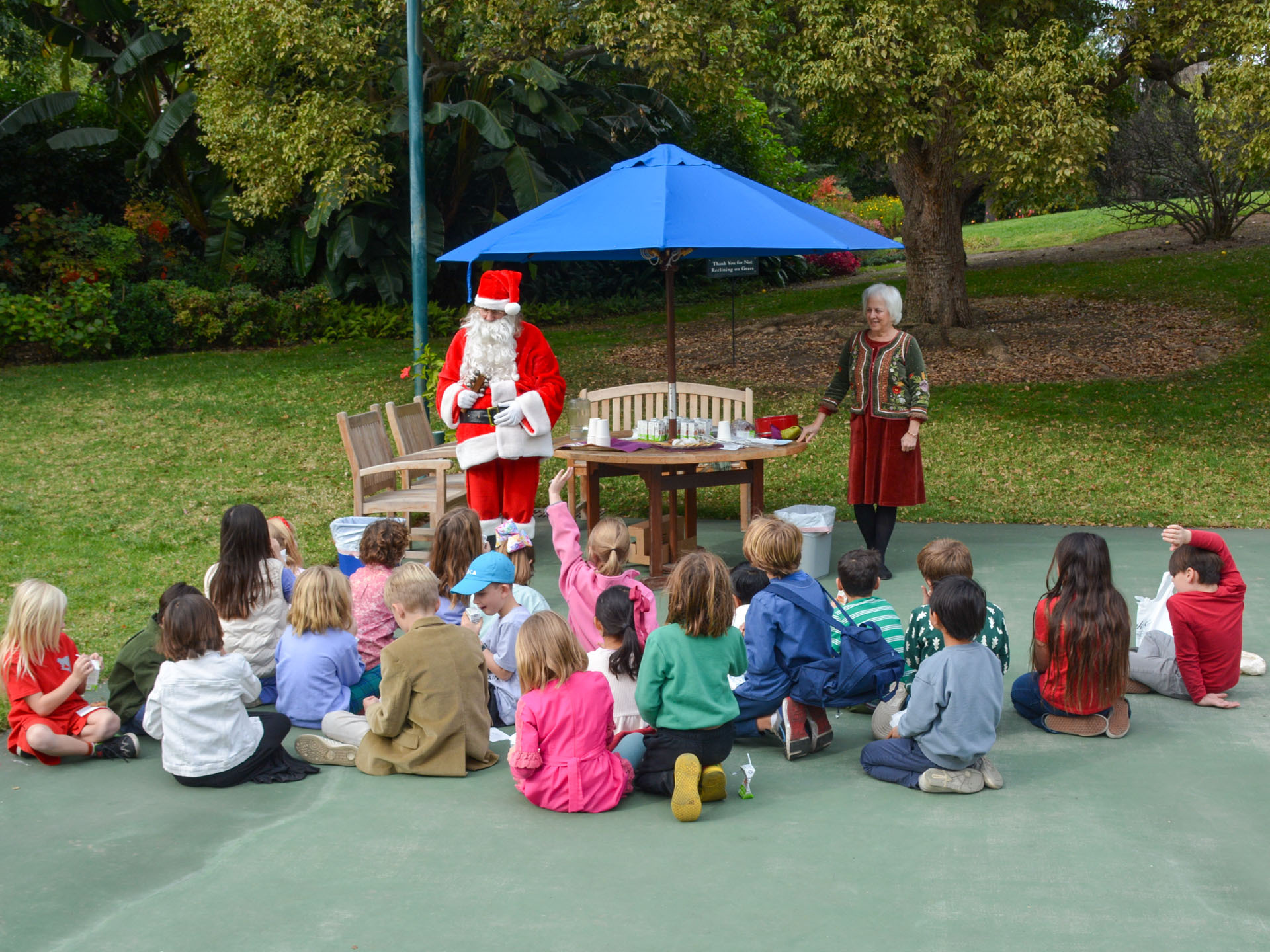Then on Wednesday, December 11, 46 second graders from the nearby Mt. Washington Elementary School — along with their teachers and volunteer parents — were hosted by monks and nuns for a special tour of the Christmas decorations and caroling inside the main building, as well as exploring the gardens and meeting with Santa Claus on the tennis court.