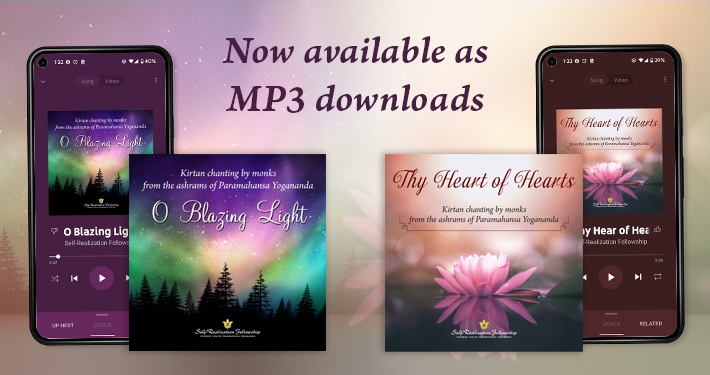 Two new collections of kirtan devotional chanting are now available for purchase as MP3 downloads from the Self-Realization Fellowship Bookstore: O Blazing Light, devotional chanting led by SRF monks from the 2020 SRF World Convocation; and Thy Heart of Hearts, devotional chanting led also by SRF monks, recorded live at past SRF World Convocations in Los Angeles.